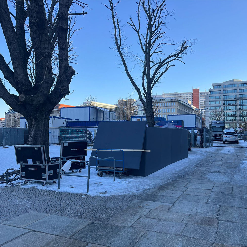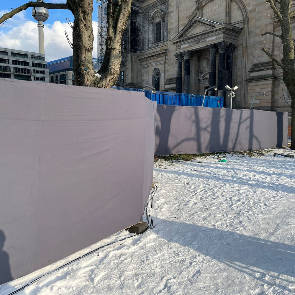 - Diskrete Einhausung von Citytoiletten mit Truss- und Molton-Verkleidung